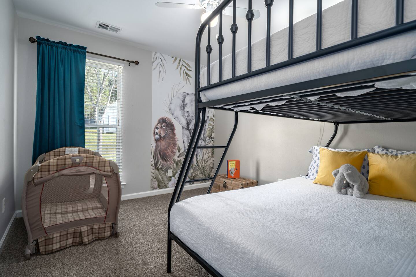 *Valentine's Day Special!* Enter the Rowling House and be welcomed by chocolates & flowers - for bookings that include Feb. 13 - 15, 2026. Hang on to your hats! Adventure awaits in this uniquely themed home. A striking jungle mural in the living room, animal-themed kids' bedrooms, relax in the Jules Verne master bedroom suite - discover all sorts of animals as you explore. Can you find the the locked trunk? Search for clues to discover the hidden surprises inside for use during your stay!